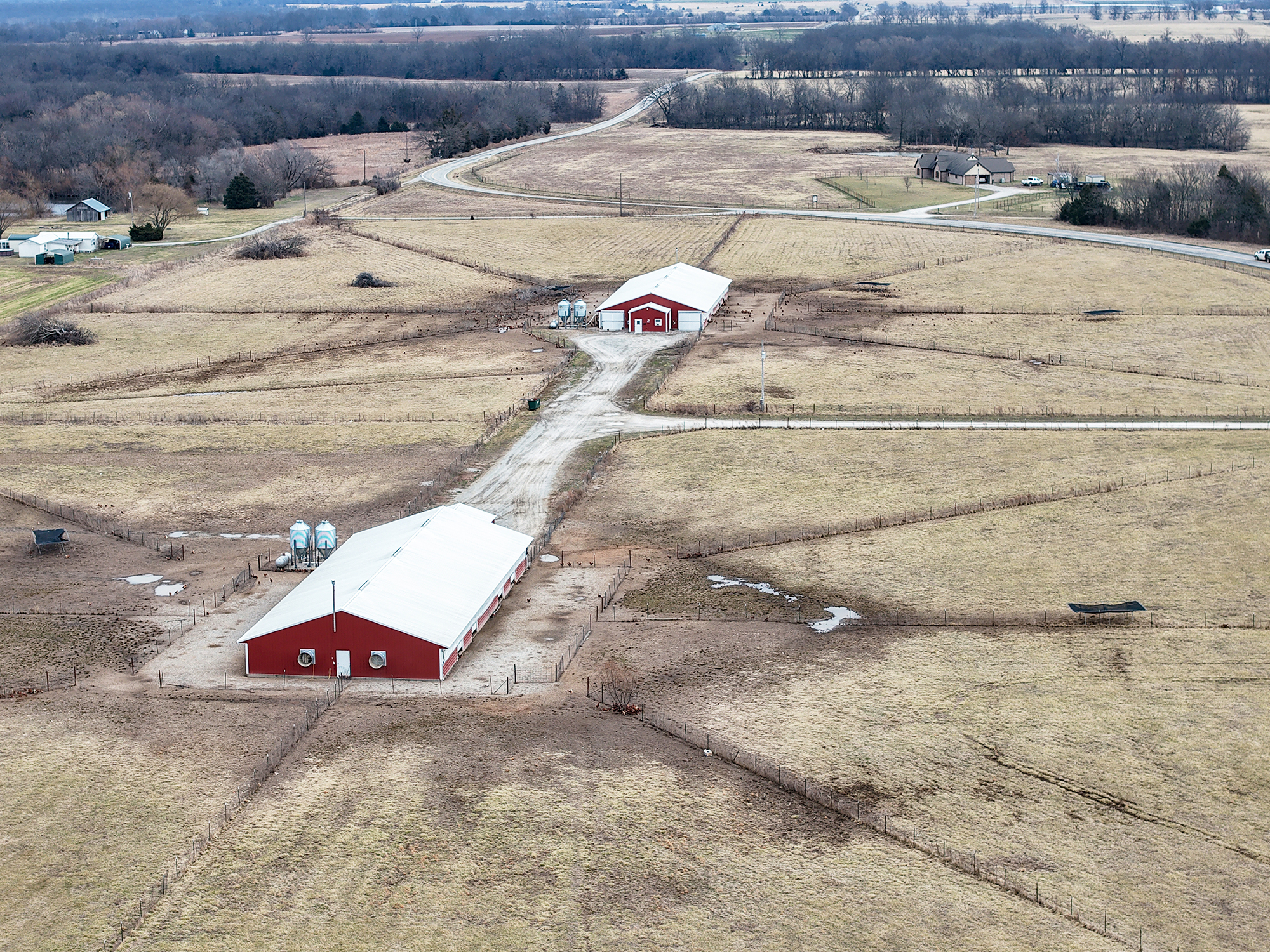Two commercial 50x130 Organic Layer Barns with an 8,500-bird capacity provide strong production potential. Fully equipped with automatic watering and feeding systems, cross ventilation, egg cooler, gathering room, backup generator, alarm system, and well water. Expansion opportunities include additional produce acreage or greenhouses.