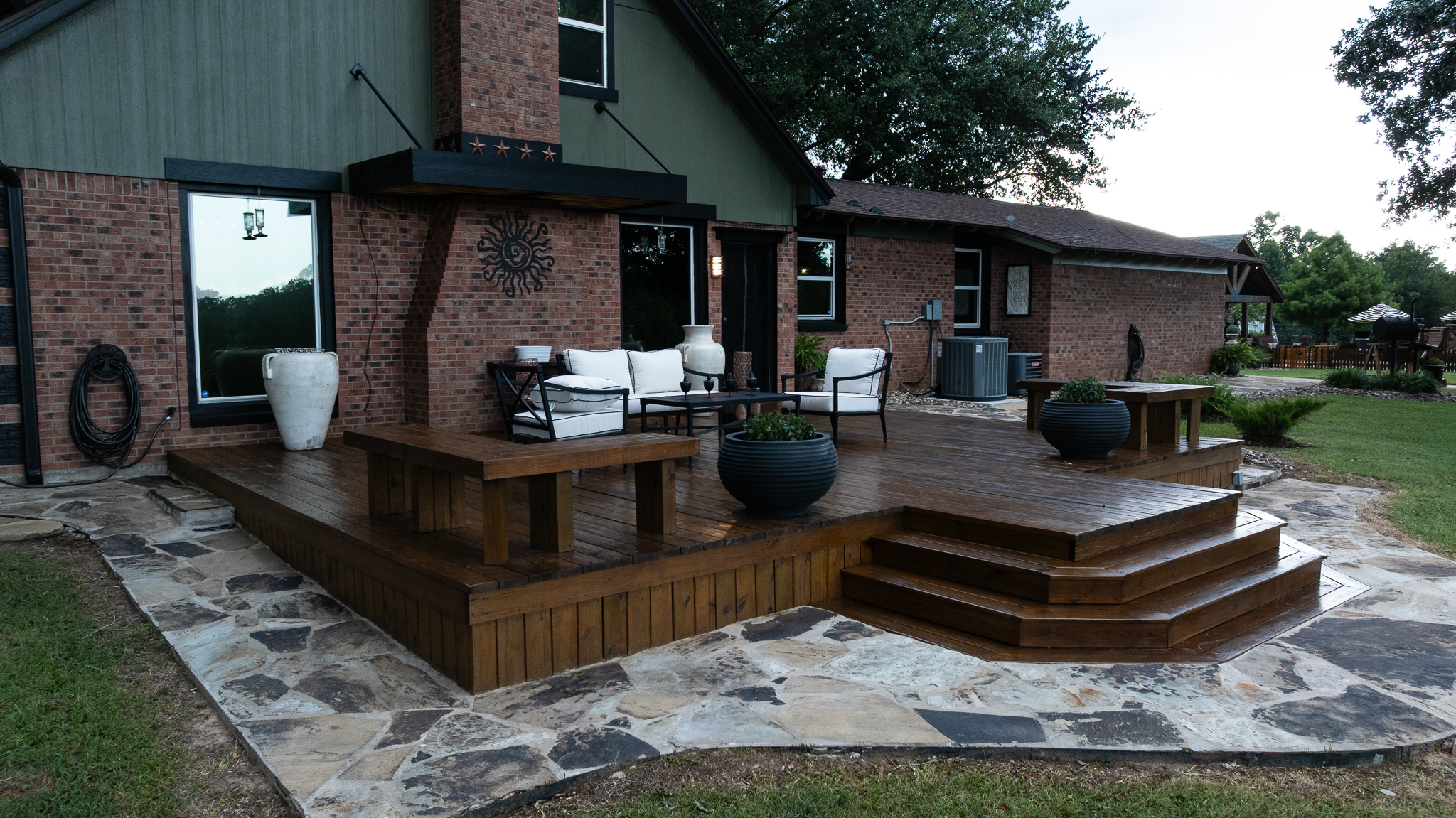 • Wraparound deck and shaded front porch for outdoor relaxation