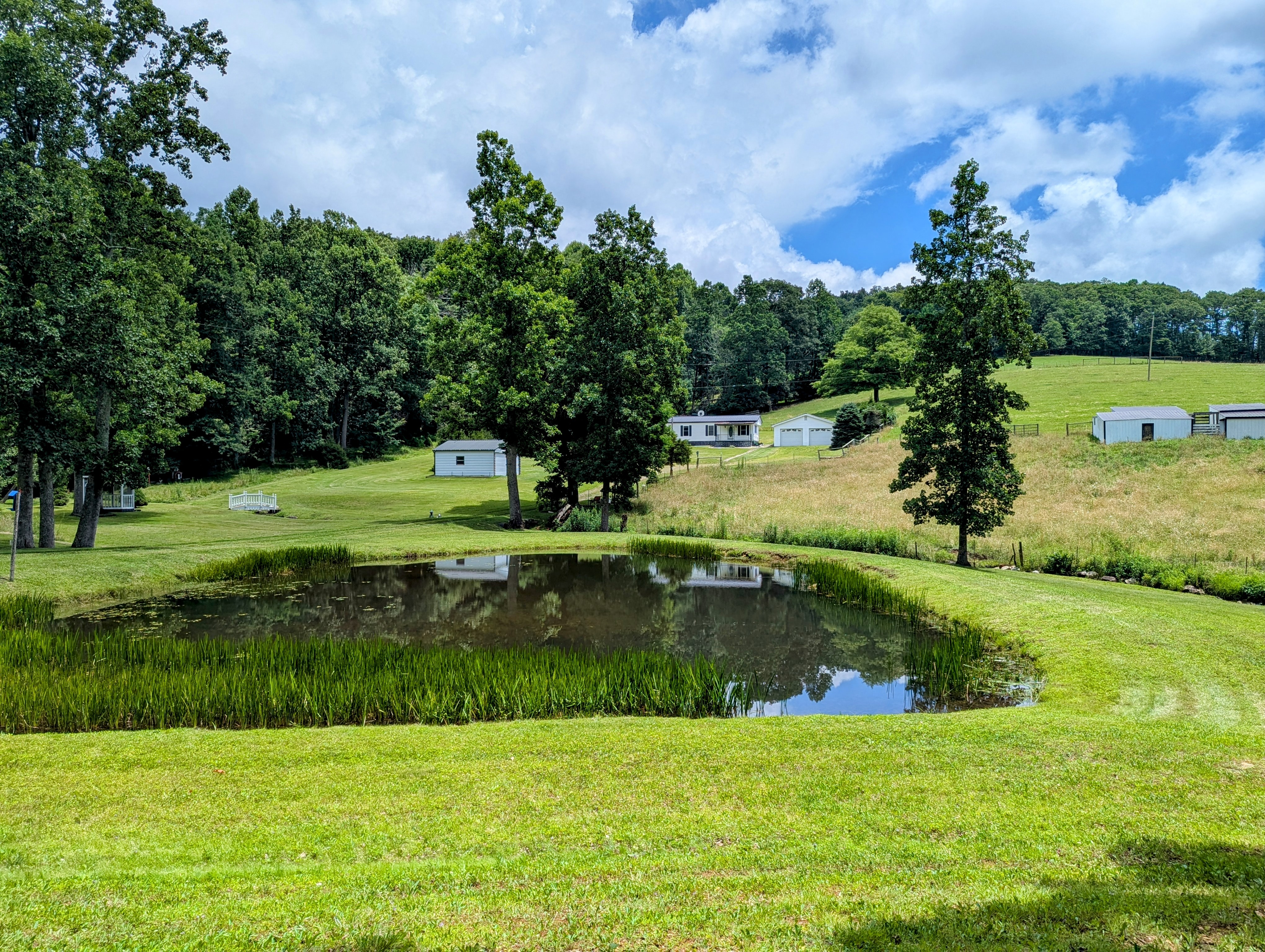 This property would make a great Mini Farm/Hobby Farm. The property features 10 acres of fenced pasture land that is also cross fenced. There are several buildings on the property that are in good condition. These buildings include a 2-car garage with a cement floor, a 2-car garage on gravel, a 2-car enclosed carport, a small 2-story wood working shed, a chicken house, and a livestock barn. Water features include a small creek meandering through the lower portion of the property, a 0.15 acre spring fed pond, and another spring that serves as the water source of the mobile home. The mobile home on the property needs a little TLC but overall is in good shape. It is a 2 bedroom, 1 bathroom mobile home with a stick-built addition. It would make a great residence either permanent or temporarily until you build your dream home. There is a great building spot on the top side of the property that features long range views looking back across Meadows of Dan and the surrounding areas. This is an amazing property that has been well taken care of over the years and just needs a new owner to continue to do the same.